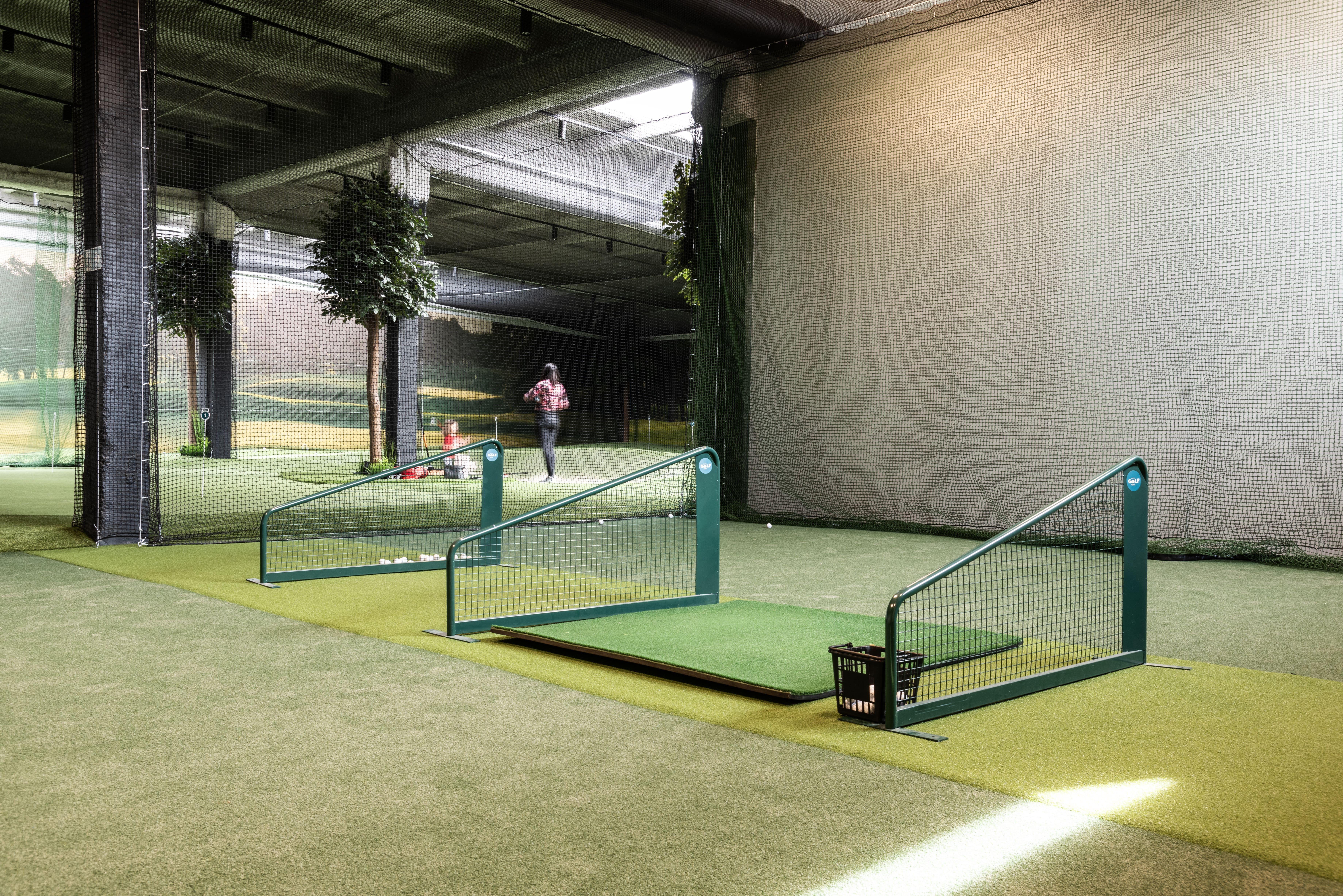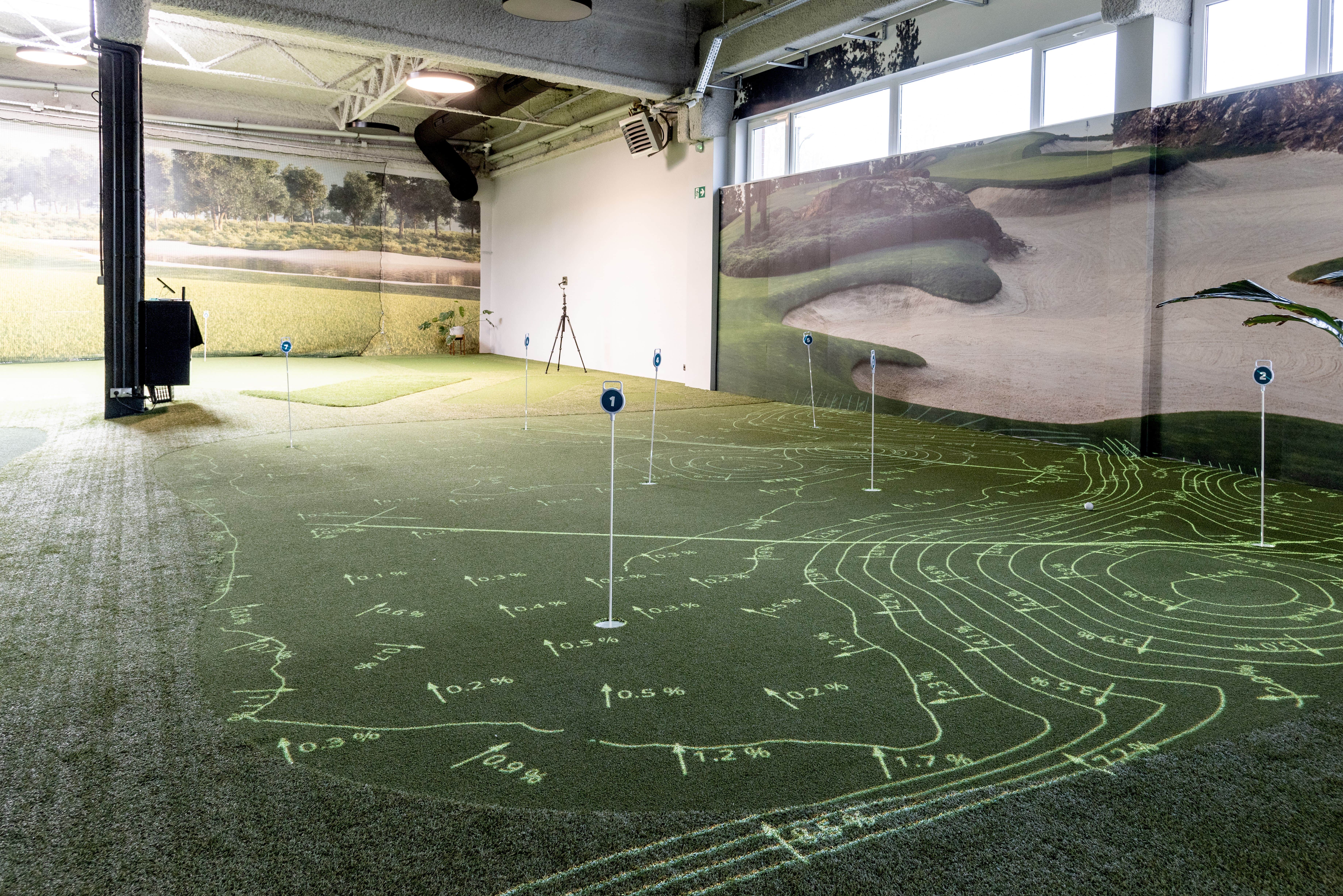 Nowoczesna hala treningowa o powierzchni 800 m² zapewnia doskonałe warunki do całorocznego treningu golfowego. Obiekt obejmuje dwa greeny o powierzchni 300 m² oraz 100 m², dwa bunkry wypełnione naturalnym piaskiem, a także możliwość regulacji stimp greenów, co pozwala dostosować prędkość nawierzchni do indywidualnych potrzeb zawodników.