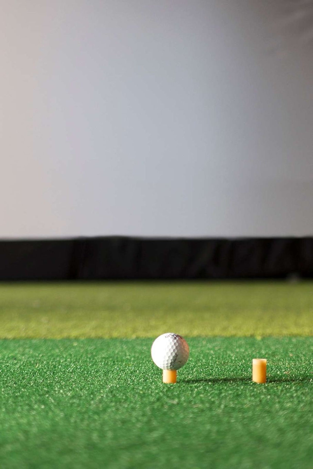 Integralną częścią przestrzeni jest strefa relaksu z eleganckimi, skórzanymi siedziskami. Miejsce, które naturalnie sprzyja rozmowie, analizie uderzeń czy spędzaniu czasu po treningu. Obecność mebli wypoczynkowych sprawia, że symulator staje się przestrzenią społeczną – idealną zarówno do indywidualnych sesji, jak i kameralnych spotkań biznesowych czy towarzyskich. Całość dopełniają dyskretnie wkomponowane elementy wyposażenia technicznego, które nie dominują wnętrza, lecz podkreślają jego funkcjonalność.