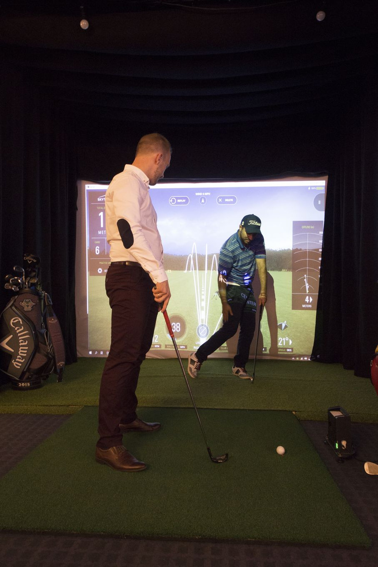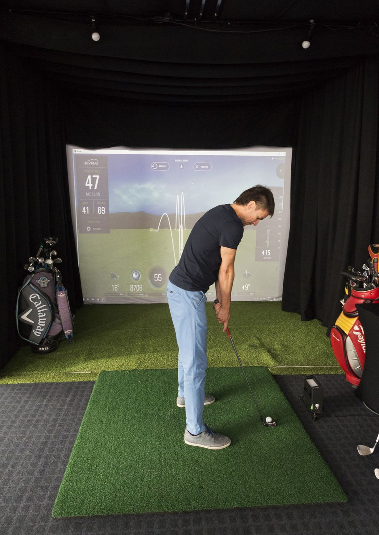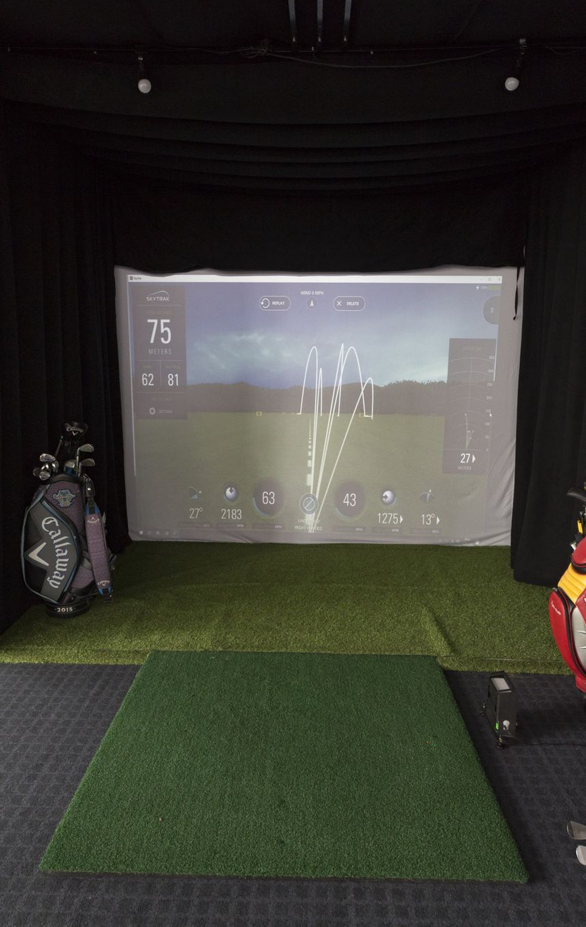 W centralnym punkcie instalacji pracuje radar SkyTrak zapewnia bardzo wysoką precyzję pomiaru i realistyczne odwzorowanie każdego strzału. Dane dotyczące lotu piłki i pracy kija natychmiast pojawiają się na ekranie projekcyjnym, umożliwiając świadomą analizę i szybkie wyciąganie wniosków treningowych.