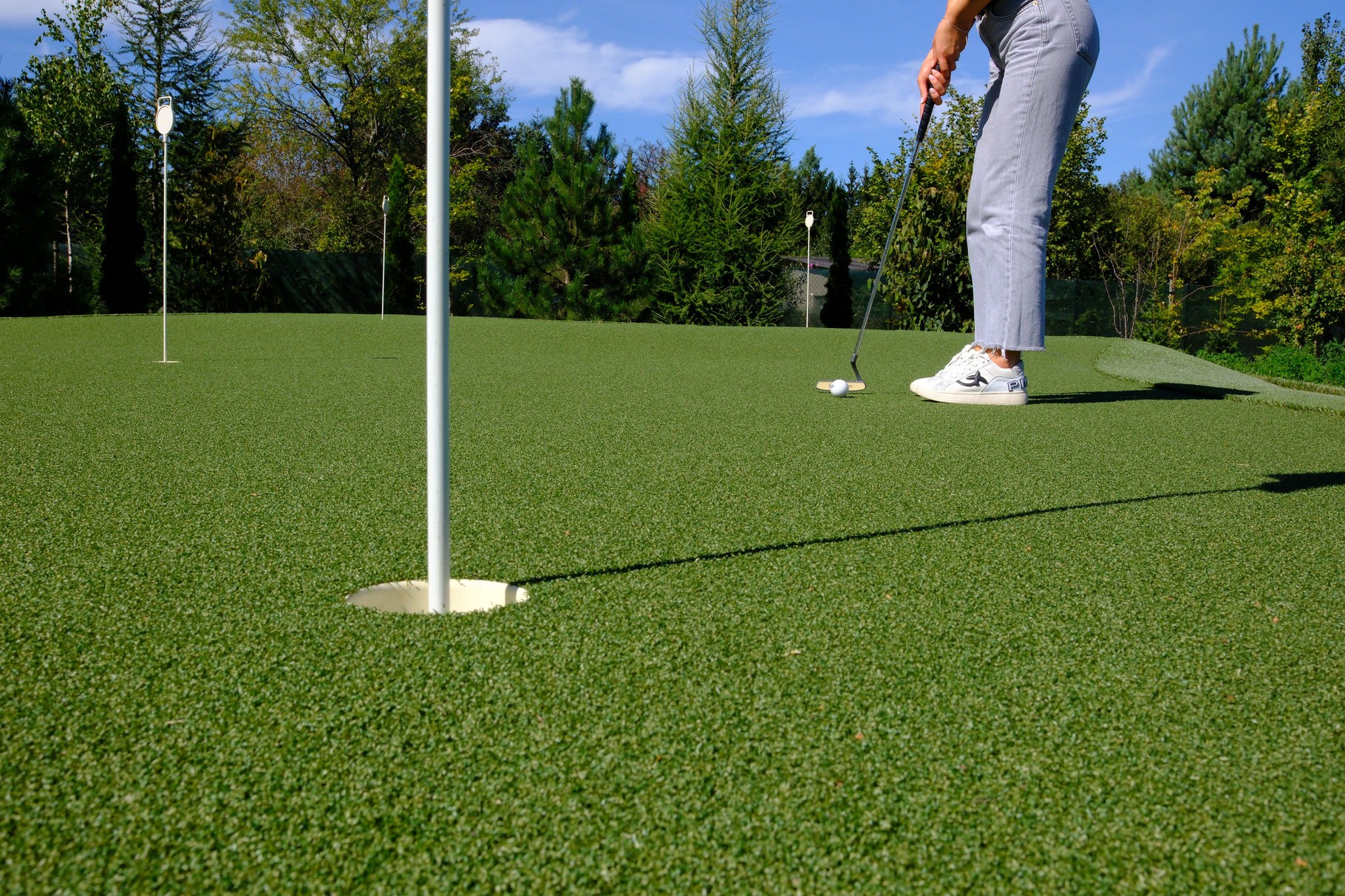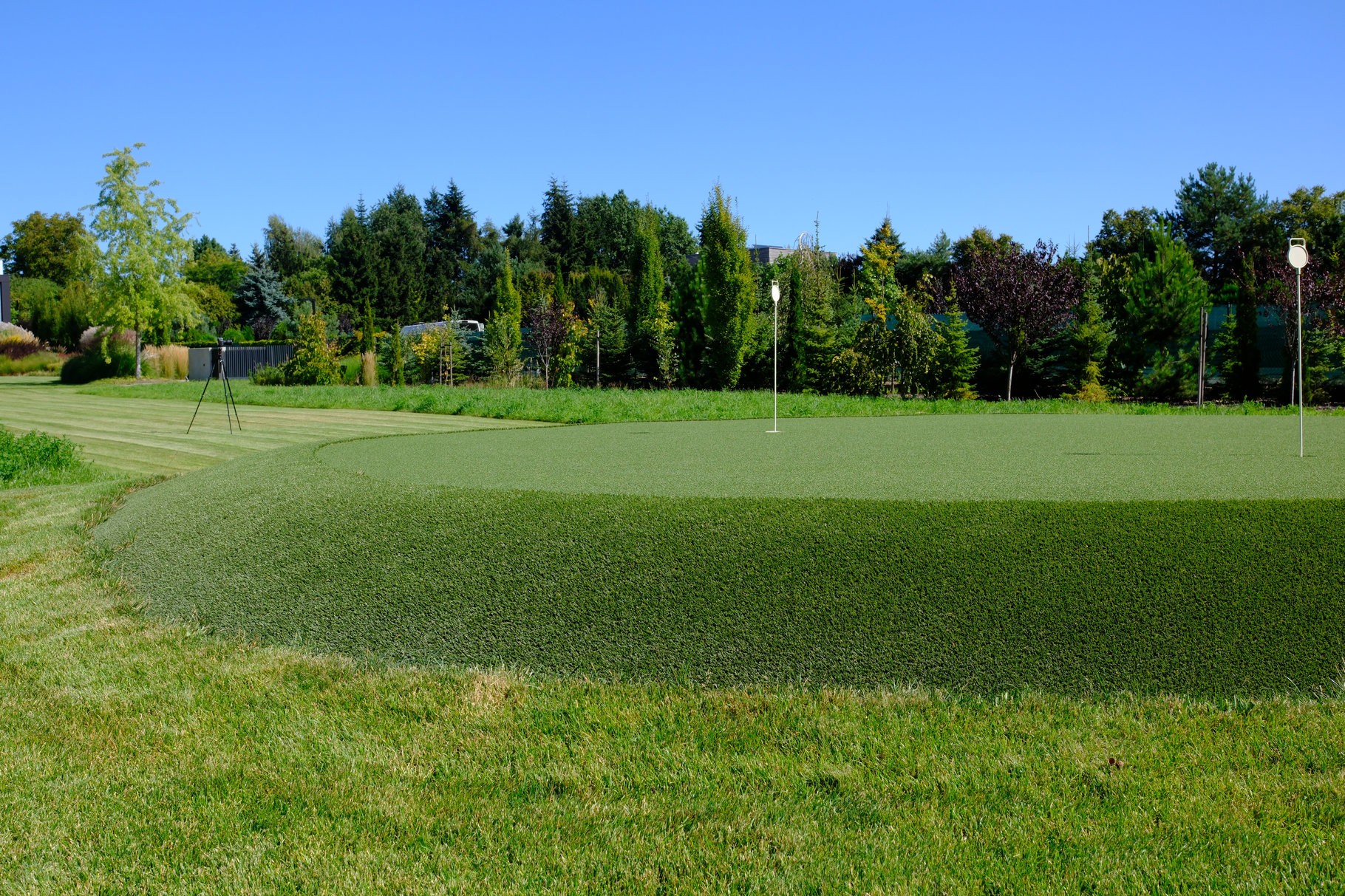 Marzysz o tym, by szlifować puttowanie bez konieczności wyjazdu do klubu? Ta realizacja to dowód na to, że profesjonalny trening może odbywać się w zaciszu własnego ogrodu. Stworzyliśmy przestrzeń, która łączy w sobie luksusową estetykę krajobrazu z technicznymi parametrami najlepszych pól golfowych, dając Ci nieograniczony dostęp do doskonalenia techniki o każdej porze dnia.